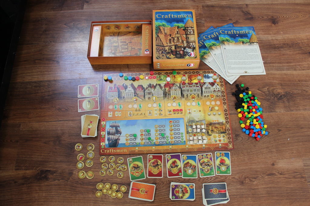 Sugerowana cena detaliczna Craftsmenów to 99,95 PLN. Za tę kwotę dostajemy zaskakująco niewielkie pudełko (co jest plusem, niektórzy, również polscy, wydawcy lubią pakować do pudła gigantyczne porcje mieszanki azotu, tlenu i innych gazów) a w środku: